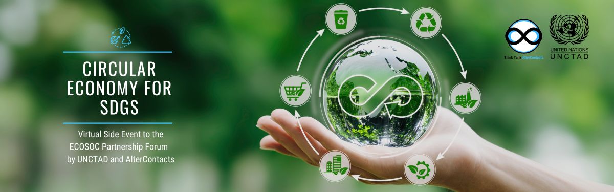 Ngjarja anësore virtuale "Ekonomia rrethore për SDGs" në Forumin e Partneritetit të OKB-së ECOSOC 2024, i bashkëorganizuar nga UNCTAD dhe AlterContacts, theksoi ekonominë rrethore si një kornizë për arritjen e SDG-ve. Veprimtaria u fokusua në objektivat kryesore të SDG, duke theksuar qëndrueshmërinë, produktivitetin bujqësor, veprimin për klimën dhe partneritetin global. Ekspertët e UNCTAD identifikuan mundësitë në bashkëpunimin me shumë palë, ndryshimin e mentalitetit dhe nevojën për mobilizimin e kapitalit.